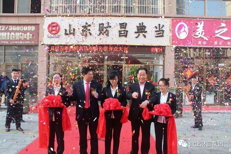 2018年03月24日08:58分,微眾財富集團旗下子公司山東財昌典當有限公司(簡稱:財昌典當)開業慶典盛大舉行。現場一片喜慶氣氛。財昌典當地址:山東省濱州市經濟技術開發區長江一路277號信達國際花園城二期12號樓103號商鋪。