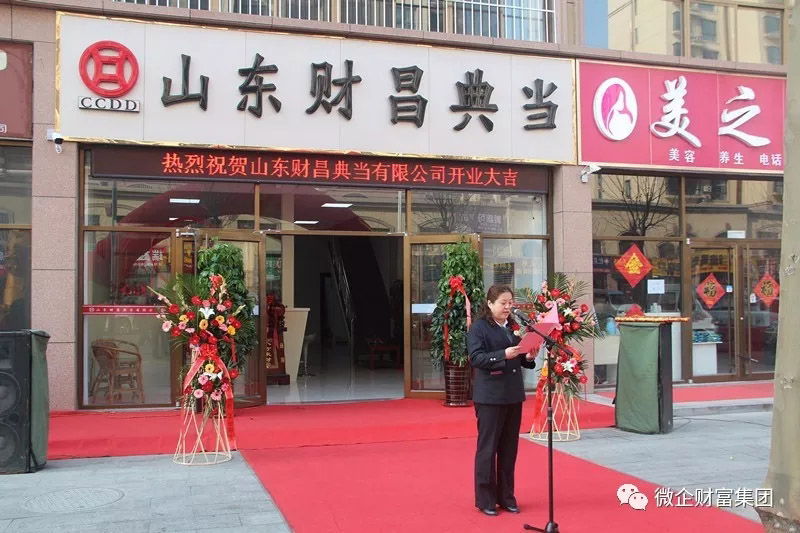 開業慶典上,財昌典當董事長聶紅梅女士在慶典中發表了熱情洋溢的致詞。她首先代表集團全體員工向前來參加財昌典當開業的社會各界朋友表示熱烈的歡迎和衷心的感謝!接著簡單介紹了典當行業的發展歷程和現代典當融資的特點和意義。她指出,典當融資具有方便、快捷、靈活的特點,典當作為一種特殊的借貸方式,能夠解困,方便人民生活,促進經濟發展具有積極作用。聶總表示,財昌典當將不斷提高經營能力,增強影響力和競爭力,為打造濱州市甚至全國最具口碑和競爭力的典當企業而不懈努力,并將與微眾財富集團一起齊頭并進,比翼齊飛,共同以優質的服務回報社會,服務本地區的經濟發展。